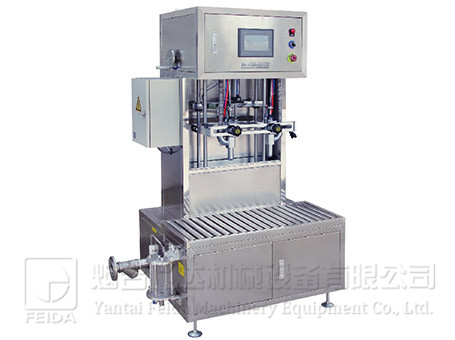 本机型为双头半自动中包装食用油灌装机,采用德国西门子PLC控制,触摸屏操作,变频器调节双速灌装,先快后慢,不溢油,灌装完毕油嘴自动回吸不滴油。具有配方功能,不同规格桶型对应相应配方,点击相应配方键即可换规格灌装;具有一键校正功能,计量有误差可自动一键校正,具有体积、质量两种计量方式。灌装速度快,精度高,操作简单快捷,适合10-25L中包装餐饮油的定量灌装。