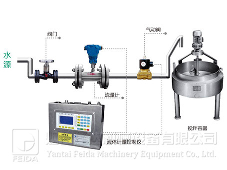 本系统主要应用于食品厂、化工厂等需要定量配水的场合,可以自由设定放水量,控制仪设定好数量,启动系统后自动放水,达到设定量后自动关闭,可配打印机打印小票,可以遥控启动。